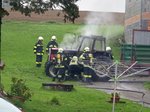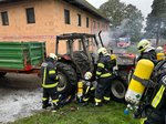 Beim Eintreffen am Einsatzort hatten die Besitzer den Traktor bereits rechtzeitig aus der Halle ins Freie gebracht, wodurch eine Ausbreitung des Brandes auf das Gebäude verhindert werden konnte. Das landwirtschaftliche Fahrzeug stand jedoch zu diesem Zeitpunkt in Vollbrand.