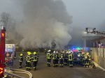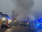 Beim Eintreffen der Einsatzkräfte stand eine Halle bereits in Vollbrand. Mehrere Feuerwehren waren mit umfangreichen Löschmaßnahmen im Einsatz.